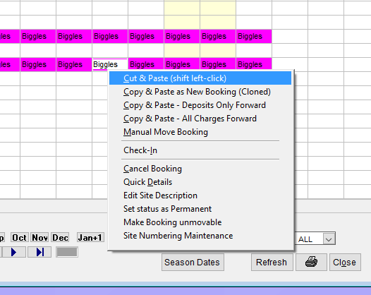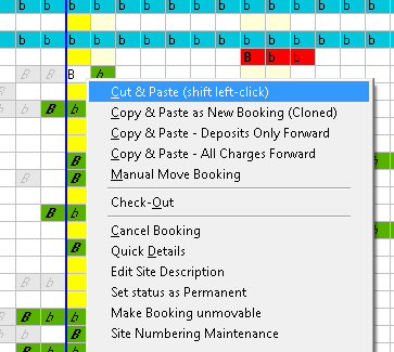 6.Right Click on a free day anywhere to the right of the booking (same site or another)