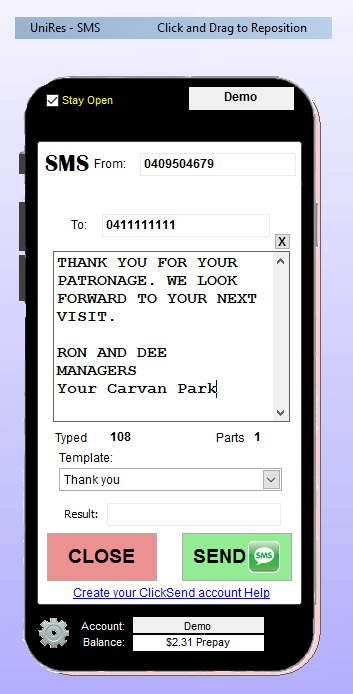 What we do in UniRes is to make the sending of text messages to your client quick and easy, with the lest amount of effort using a handy Message composer in the form of a familiar Mobile Smart Phone handset.